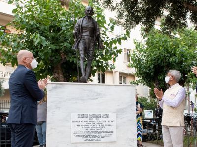 Αποκαλυπτήρια ανδριάντα του Μαχάτμα Γκάντι στην Αθήνα παρουσία του Ινδού ΥΠΕΞ